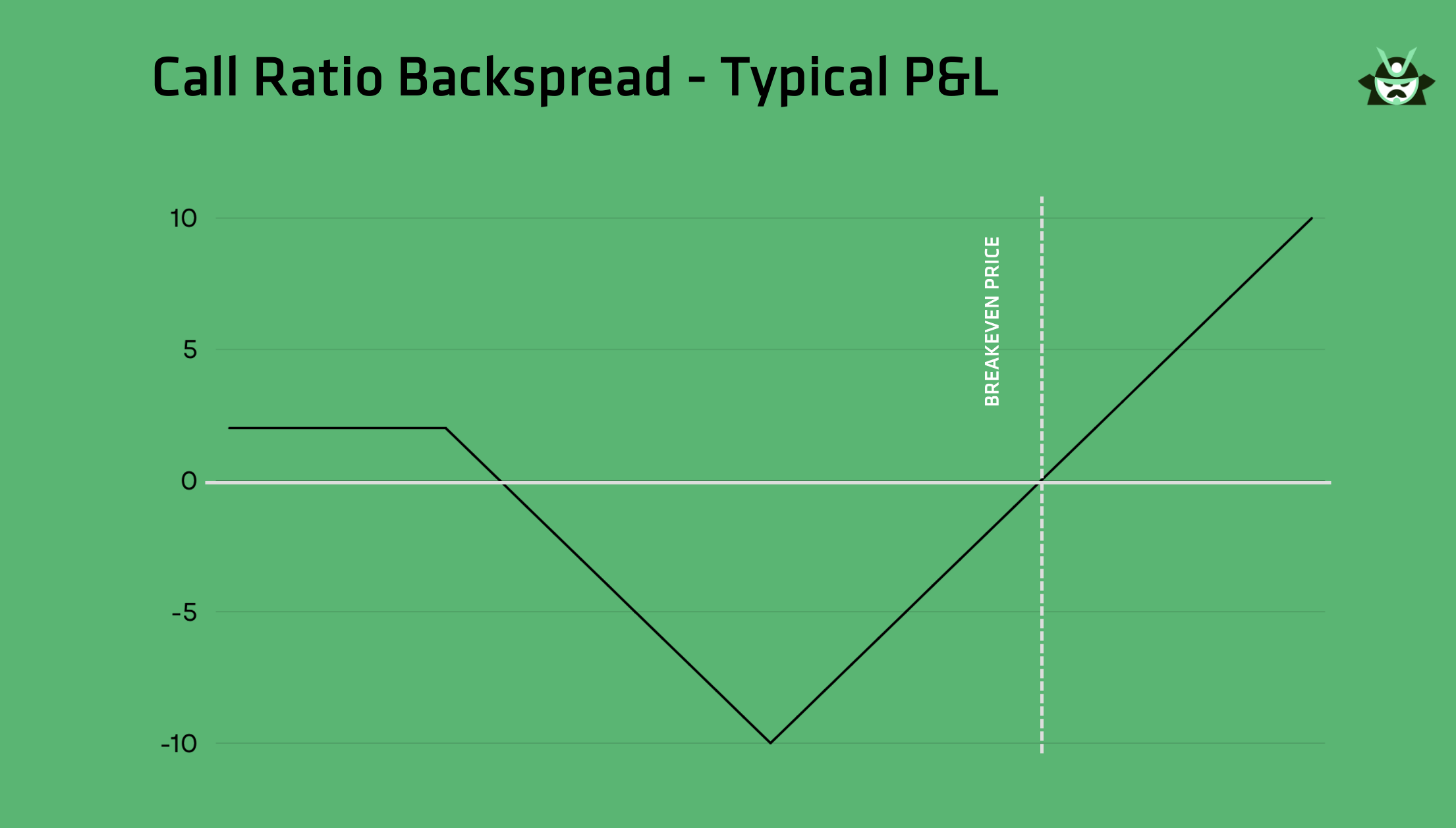 - Call ratio backspread: Used when expecting a strong upward move. The trader buys more calls than they sell, ensuring unlimited upside.