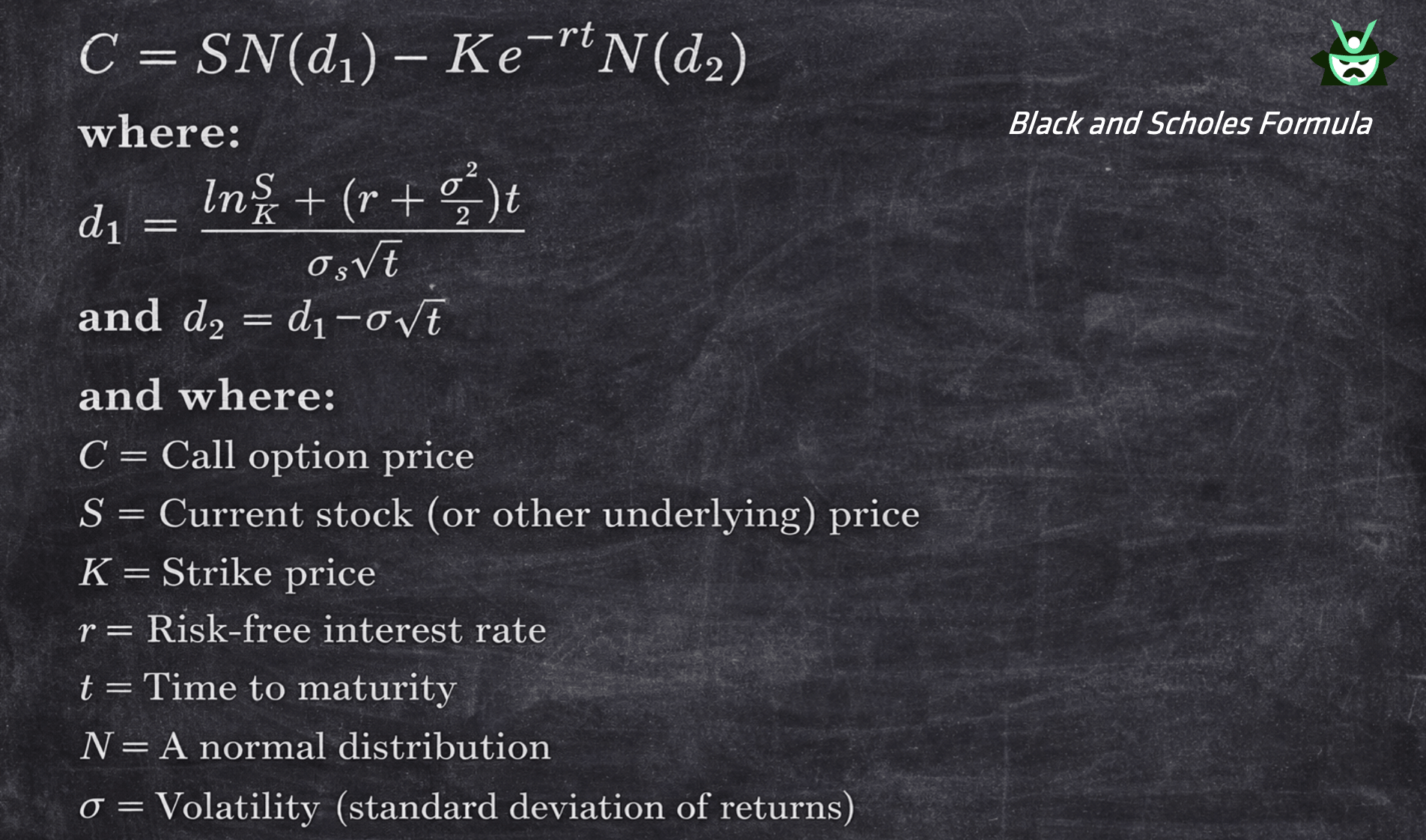 The formula prices a call option by combining the expected benefit of owning the underlying asset with the present cost of exercising the option later.