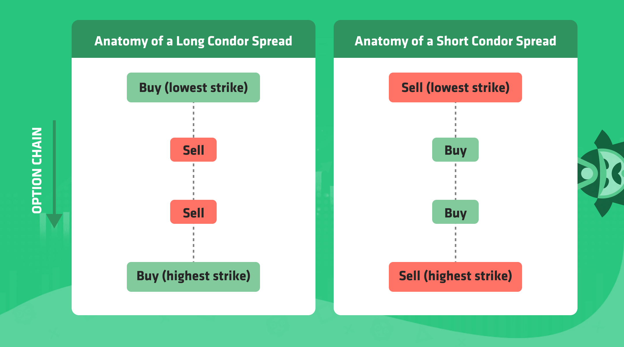 Before leaving you, we want to address a few additional points that it is worth considering before trading a condor spread (either long or short). First of all, check out our infographic about choosing the right condor strategy for the right moment: