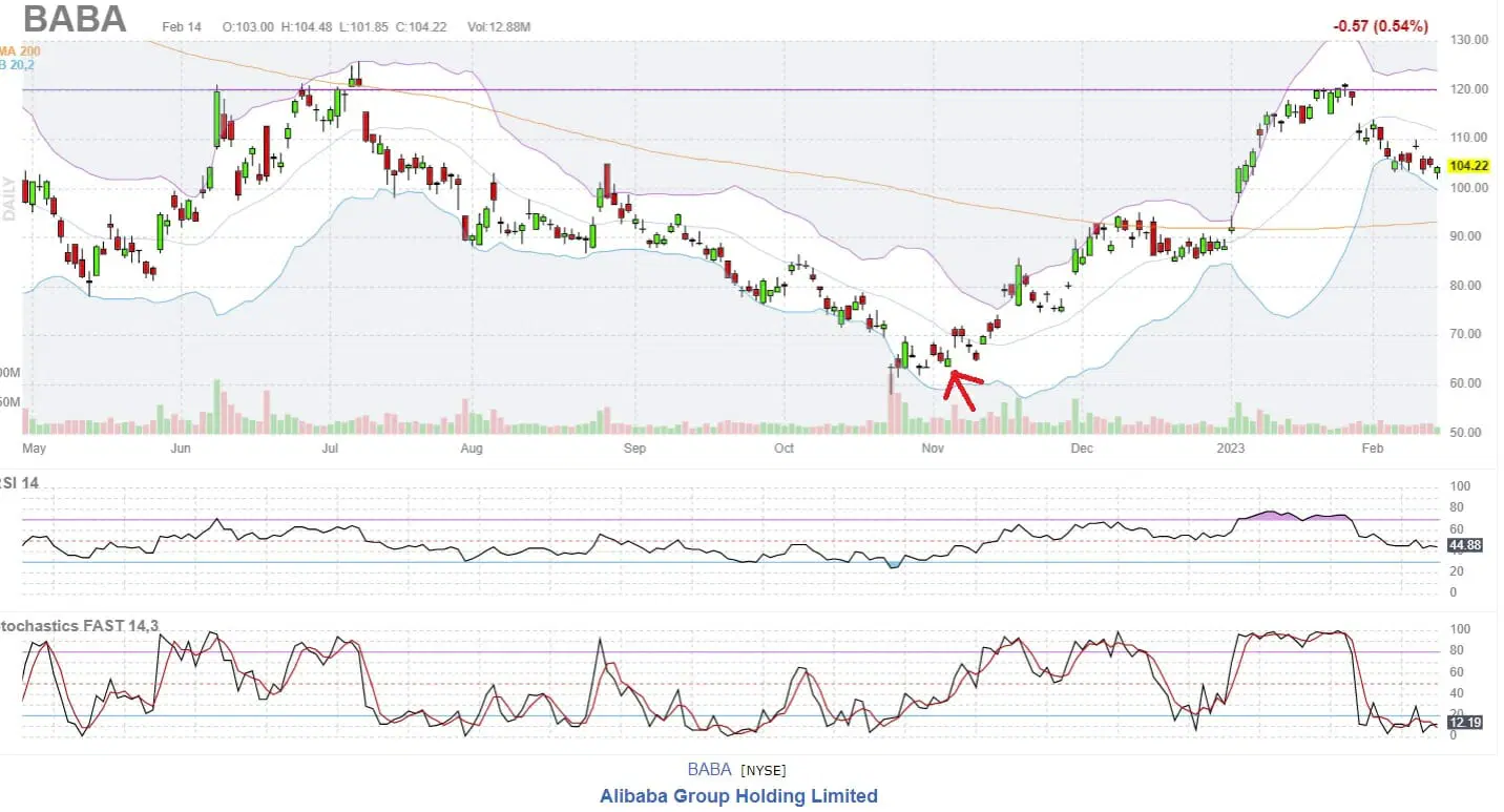 Chinese stocks got hit hard during 2021-2022 due to valid concerns about China's political and business environment. So even if the company had a solid business (like Alibaba - Ticker $BABA), it got hit hard - from around $300 at the highs to about $60 at the lows. Nevertheless, during the second half of 2022, more and more hedge funds and other players started talking about $BABA as a lucrative long opportunity, as the company had a solid and resilient business. On Nov 3rd, $BABA appeared at the top signal position in our CoM report. The CoM trend is positive, options volume is high (11% above average), and the options market 'center' was 50% above the current market price.