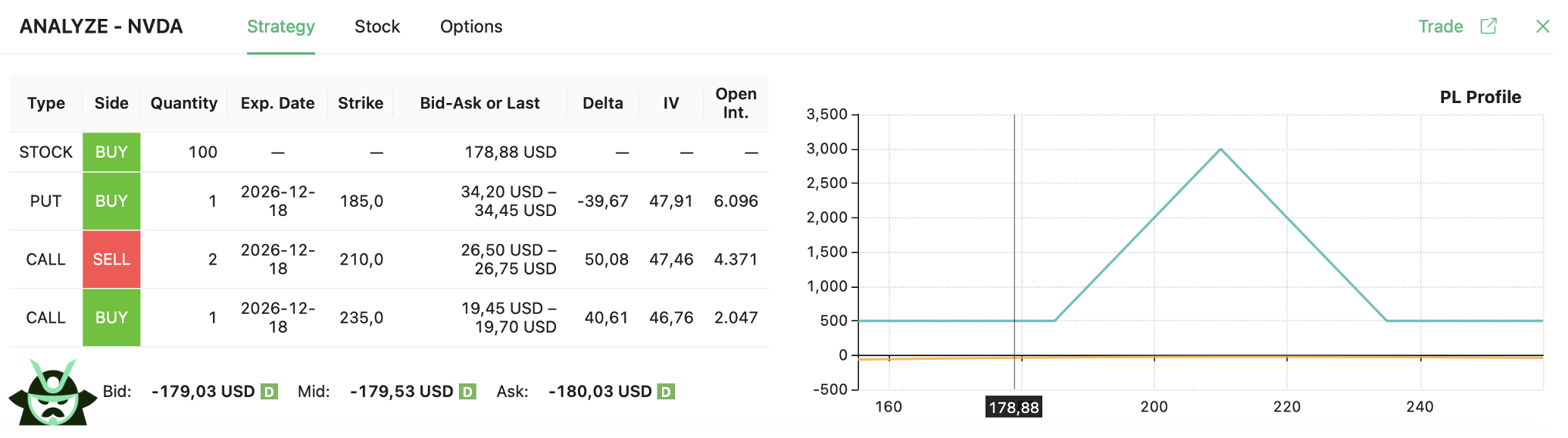 - You buy 100 NVDA shares at 178.88