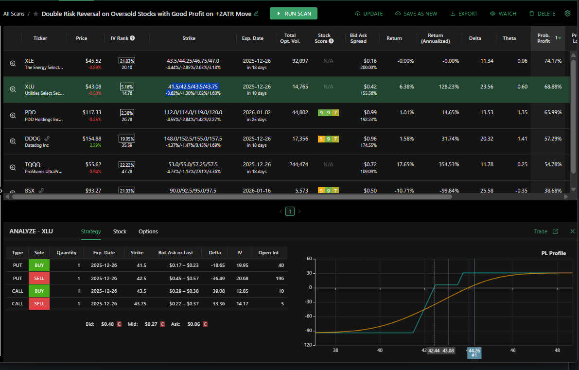 We added a new predefined scan that screens for a two-spread variation of the classic risk reversal.