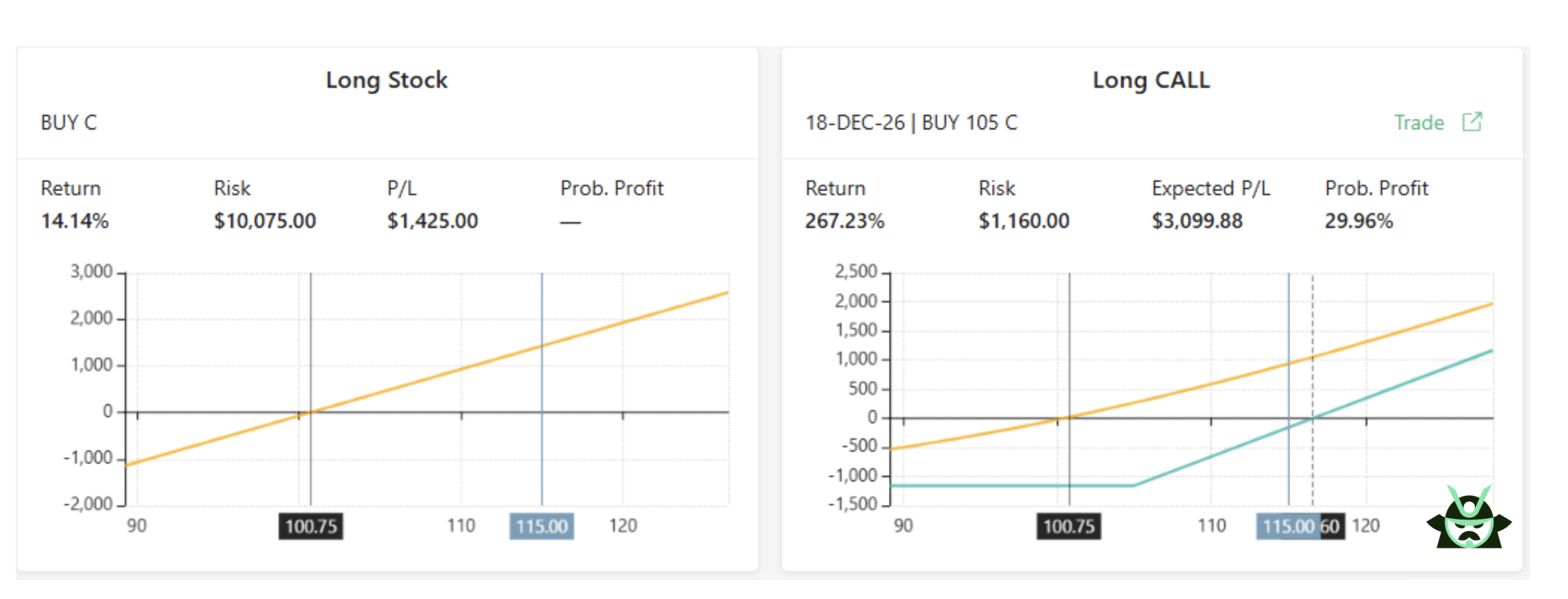 The Scenario: Citigroup is currently trading at $100.75. You did your research and think the stock price will increase to $115 within the next year.