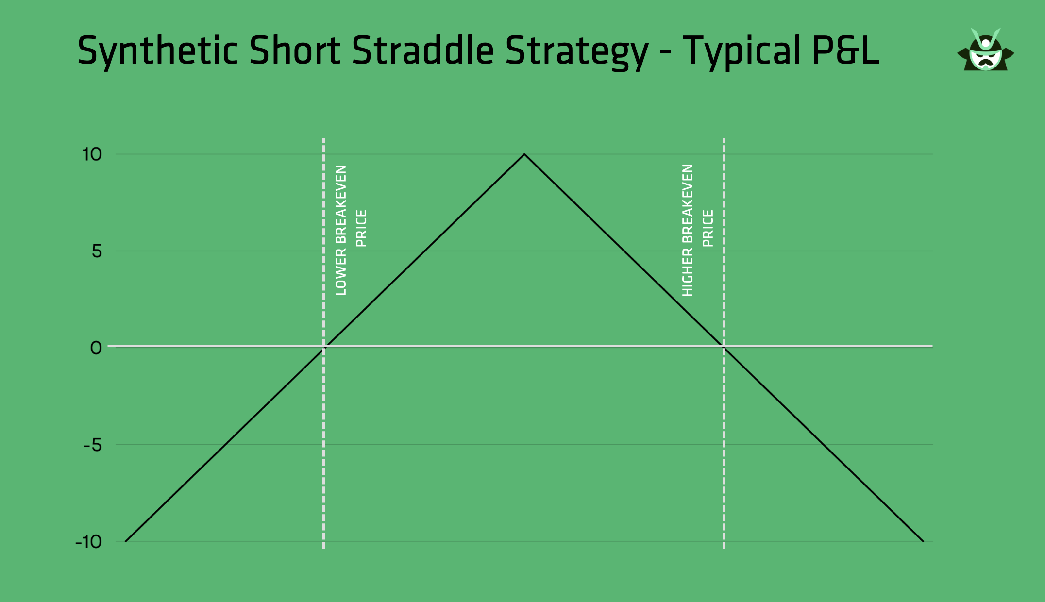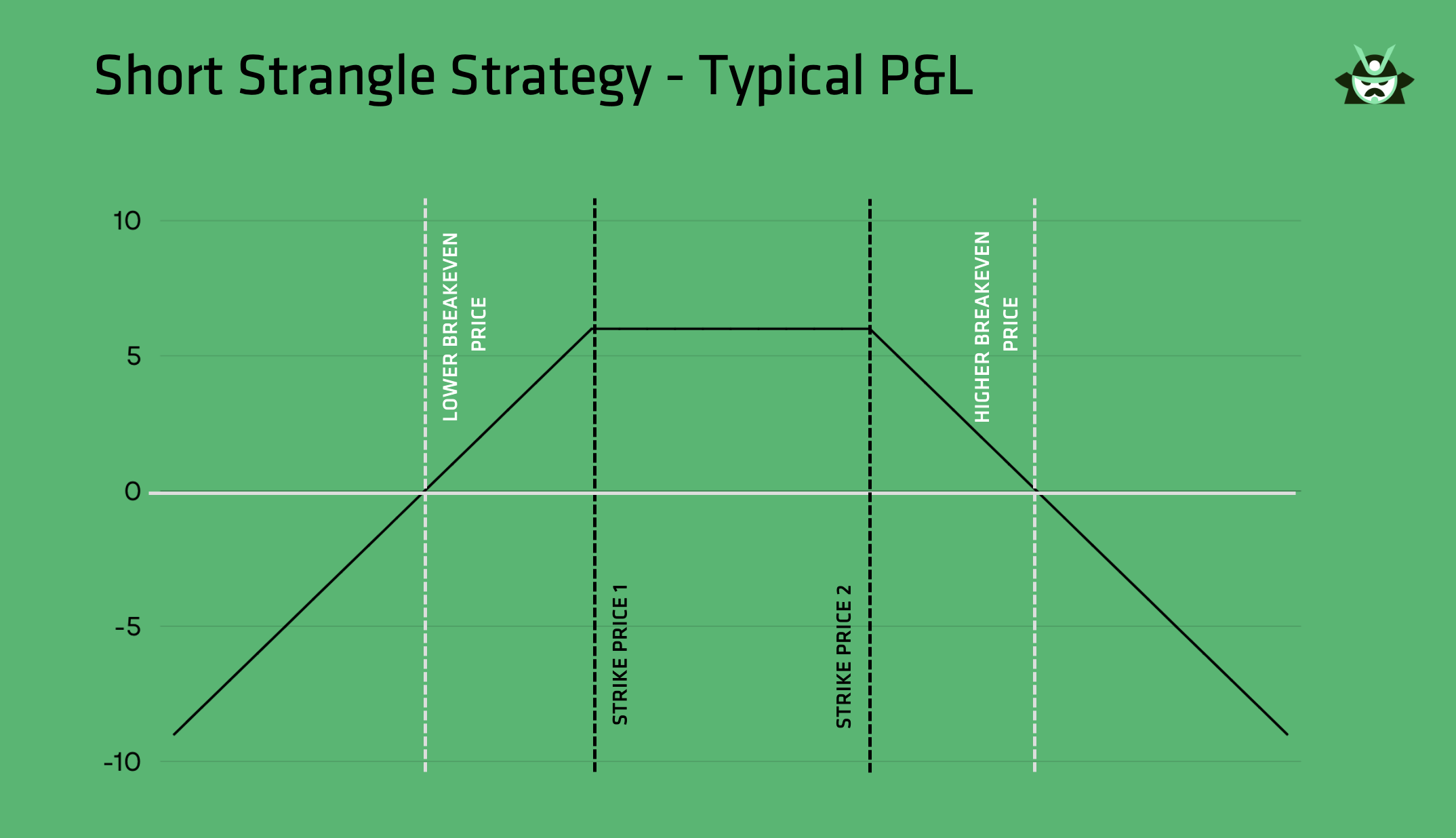 Because both strikes are OTM, the premium collected is smaller than with a straddle, but, as you see from the chart above, the trade can tolerate more price movement before hitting breakeven. This makes it useful when you expect sideways movement but not perfectly flat action.