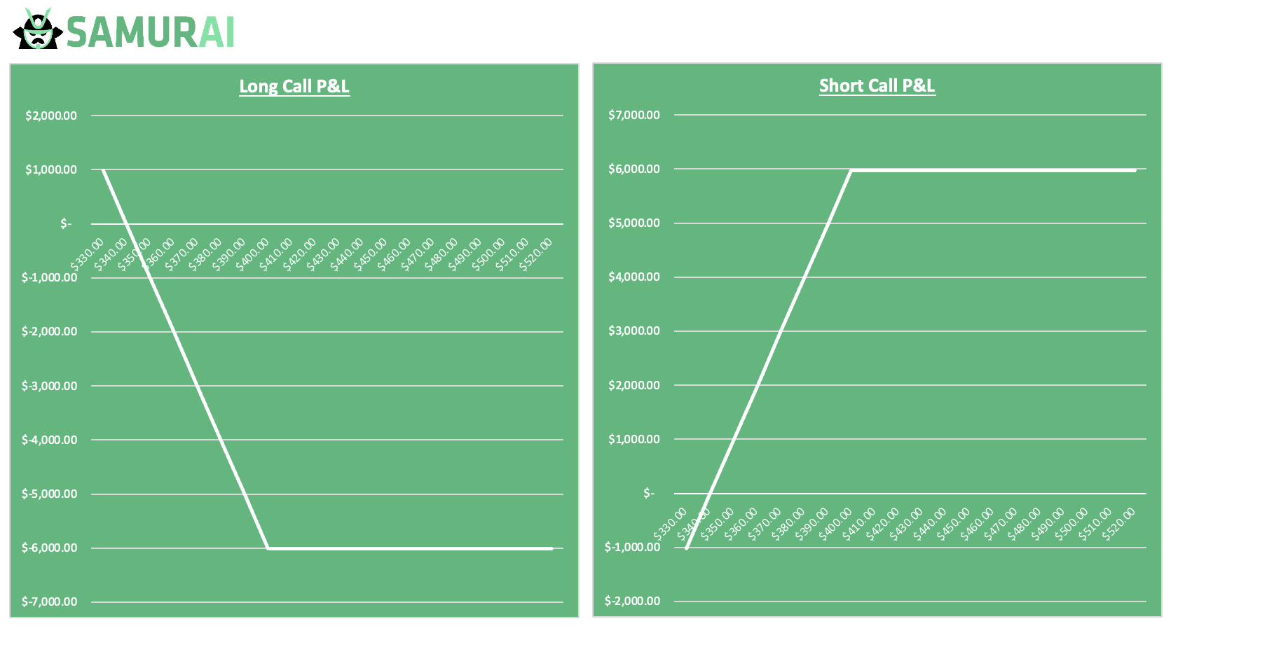 - The kink in the line always sits at the strike price