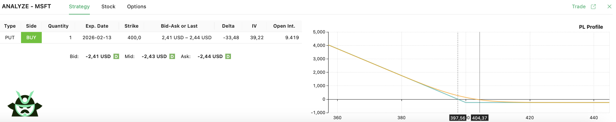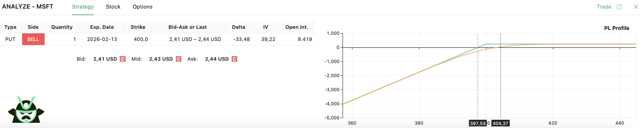 The same setup also displays the short put side: