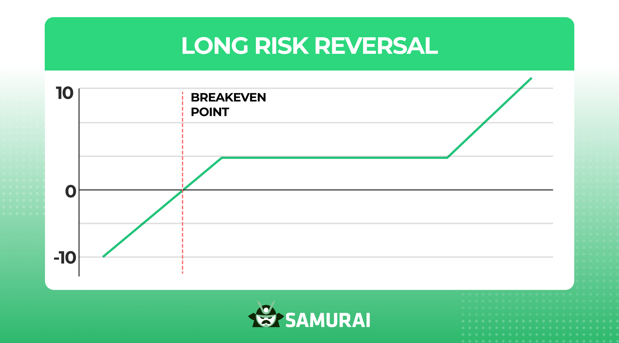 Breakeven levels are simple. They sit just beyond the short strike for a long risk reversal, and just beyond the long strike for a short risk reversal.