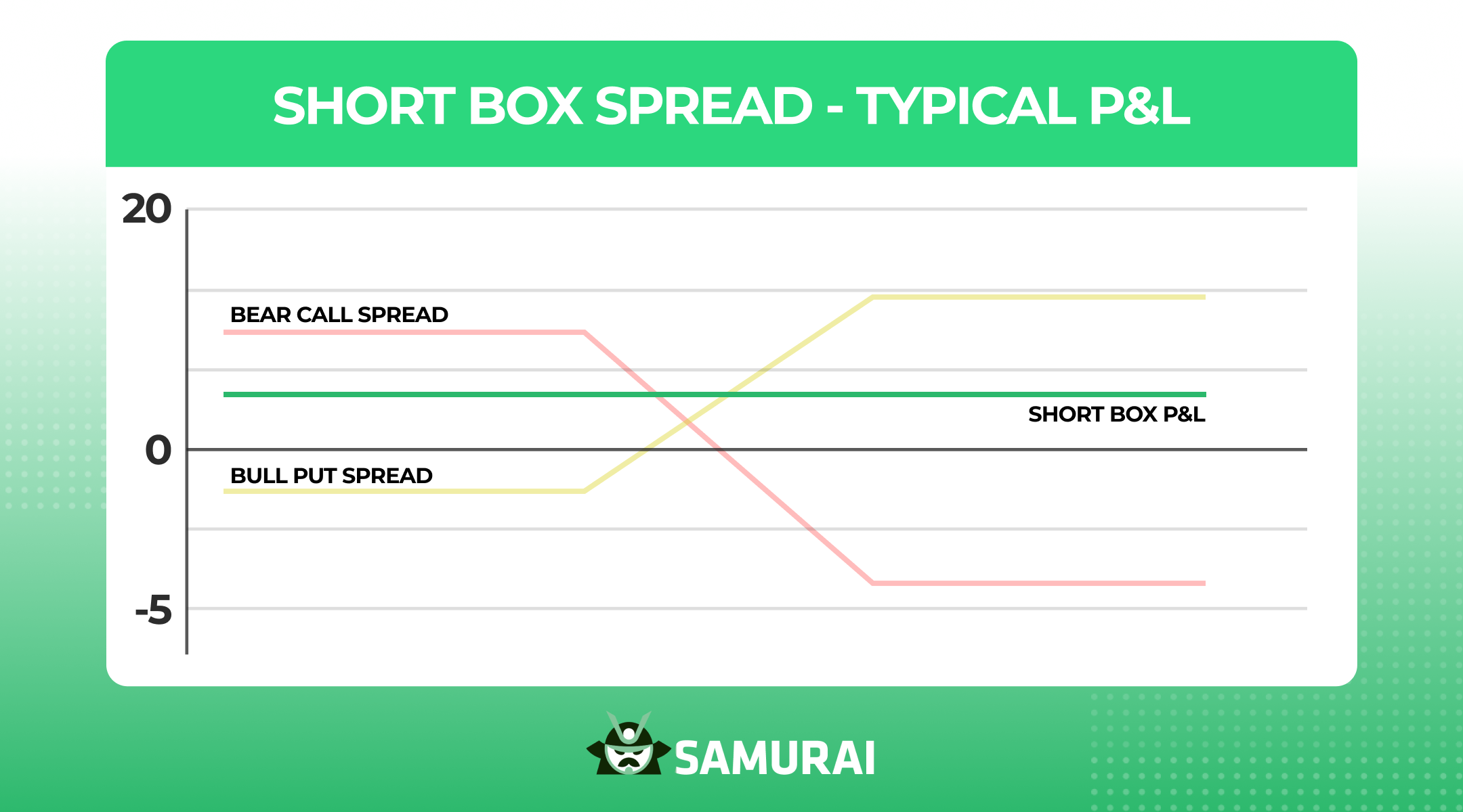 The typical profit and loss (P&L) profile of a short box spread will look like this (focus on the white line):