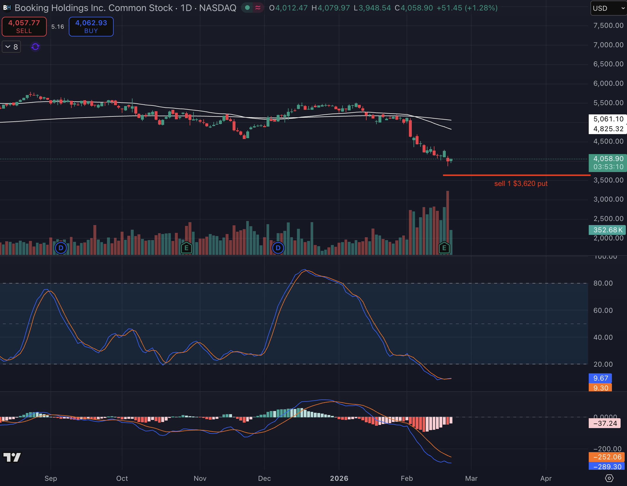 I opened a short put position on BKNG today. The stock is widely oversold so I'm ok with either getting assigned shares (and do a wheel with a covered call) or rolling this down and further in time a few times. But since BKNG is quite expensive, I'll probably aim for rolling.
