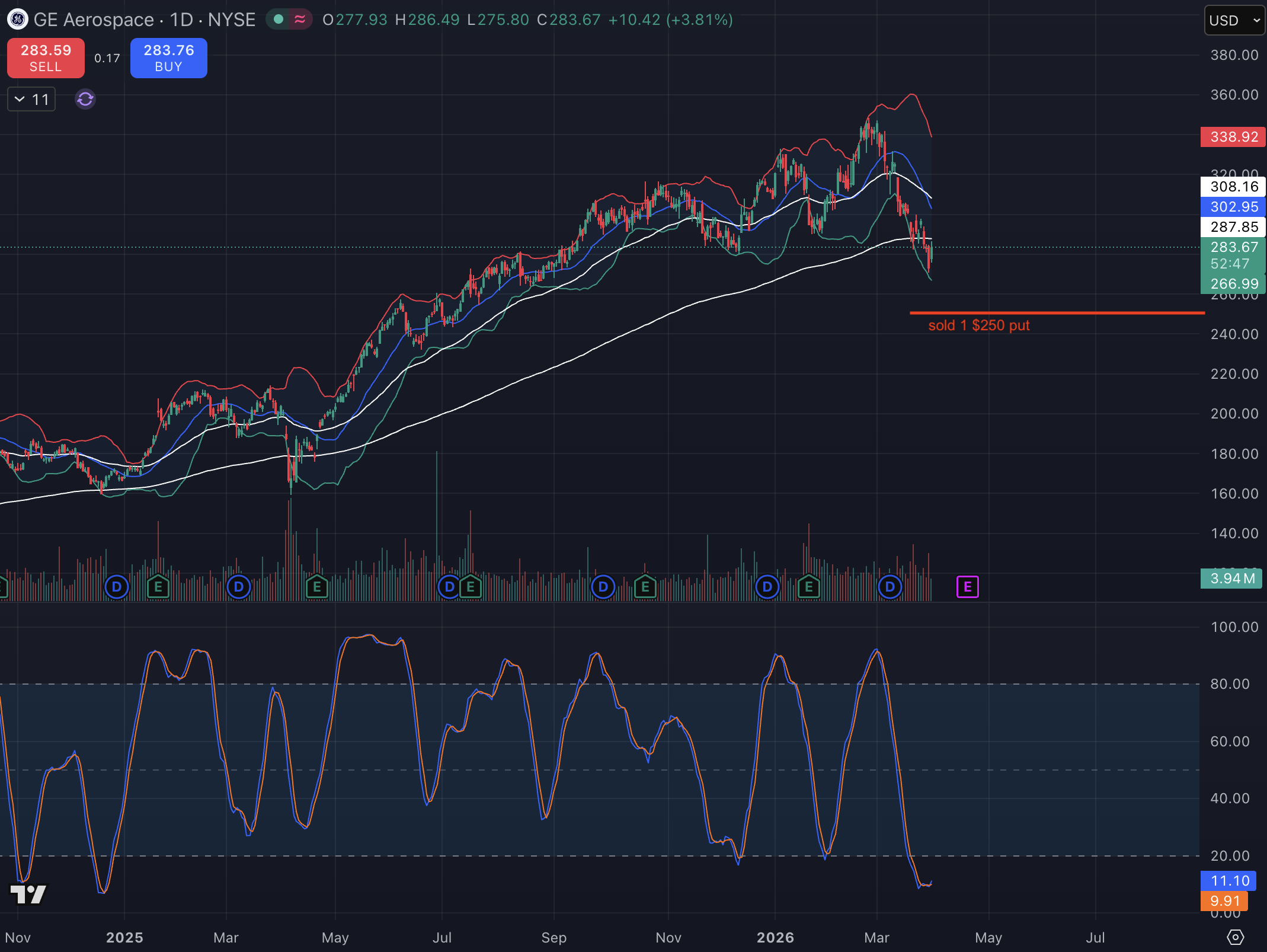 GE Aerospace (GE) is looking super oversold right now, with an IV rank above 95%, so I sold a put on it.