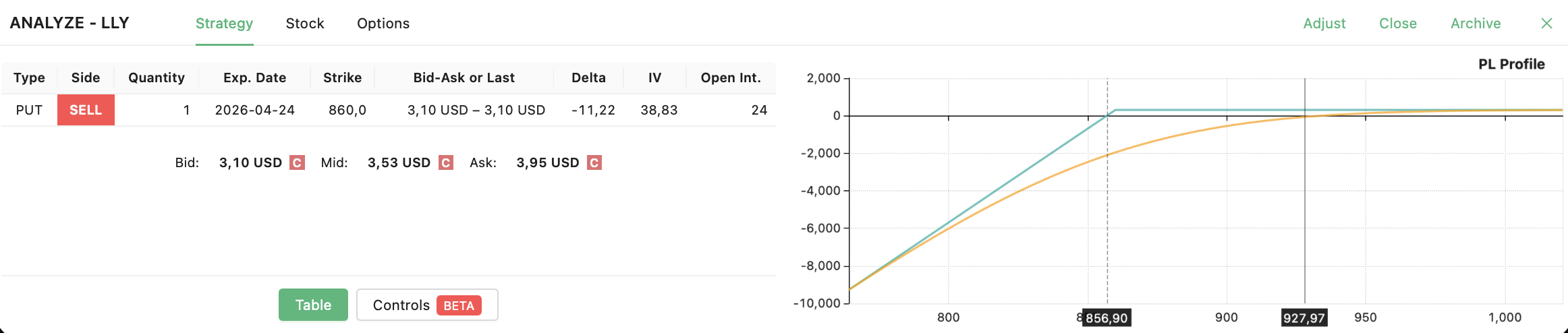 Sell 1x LLY 24 Apr 2026 $860 Put @ $3.10