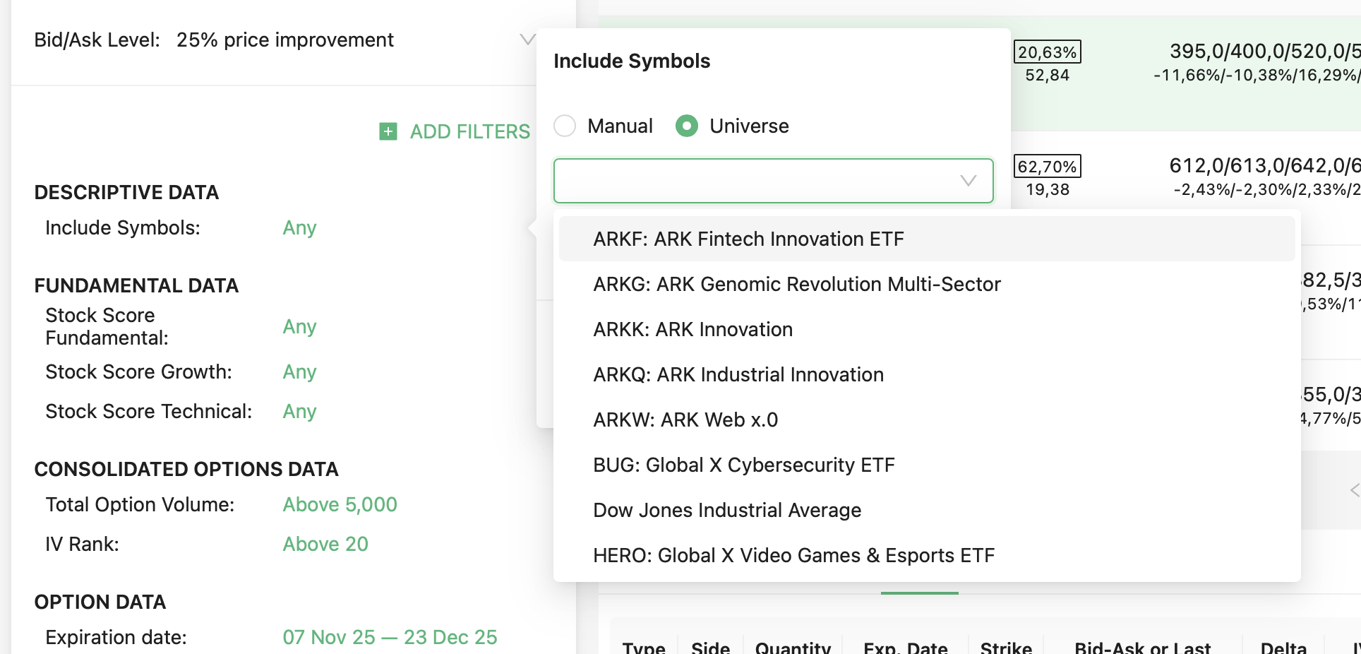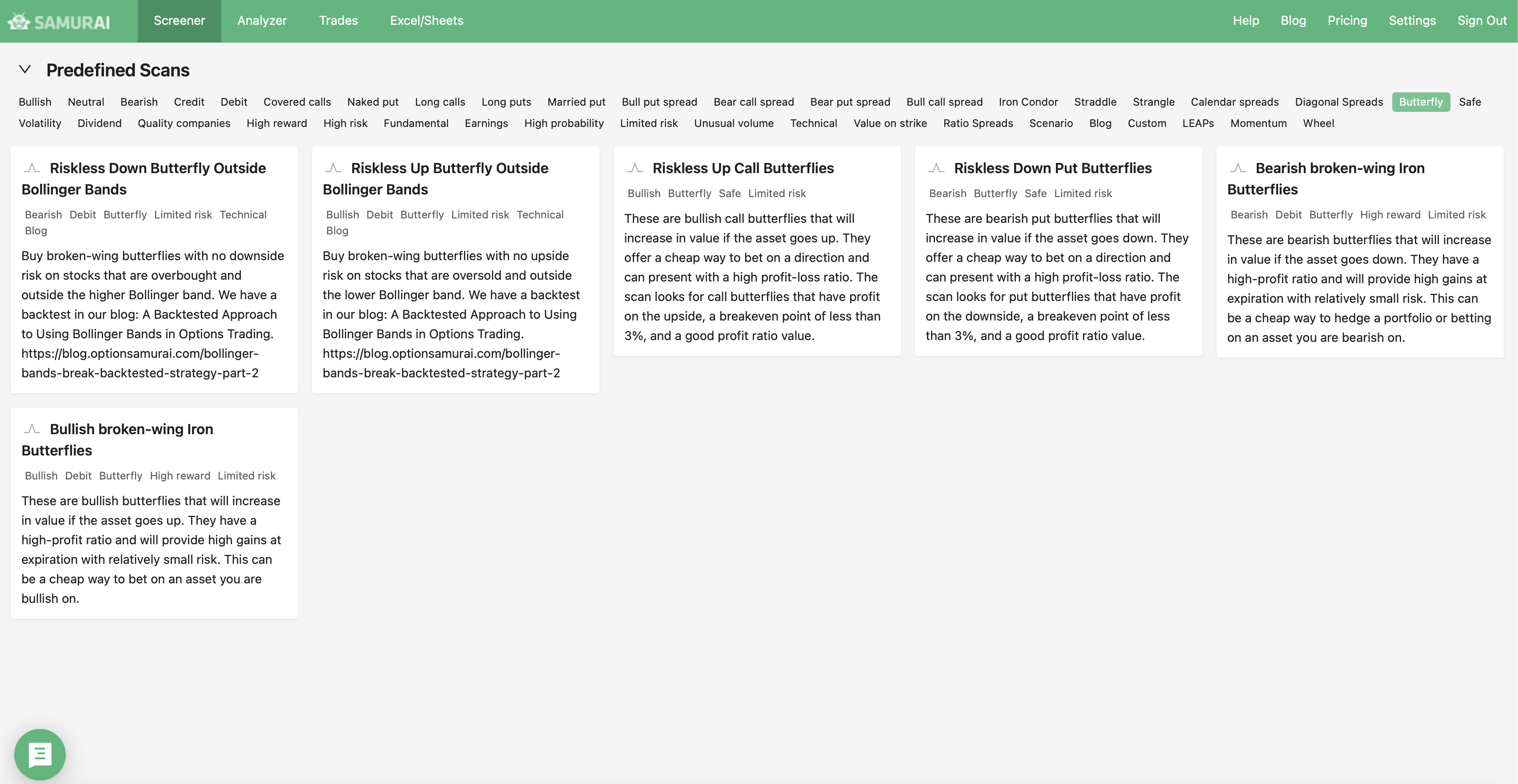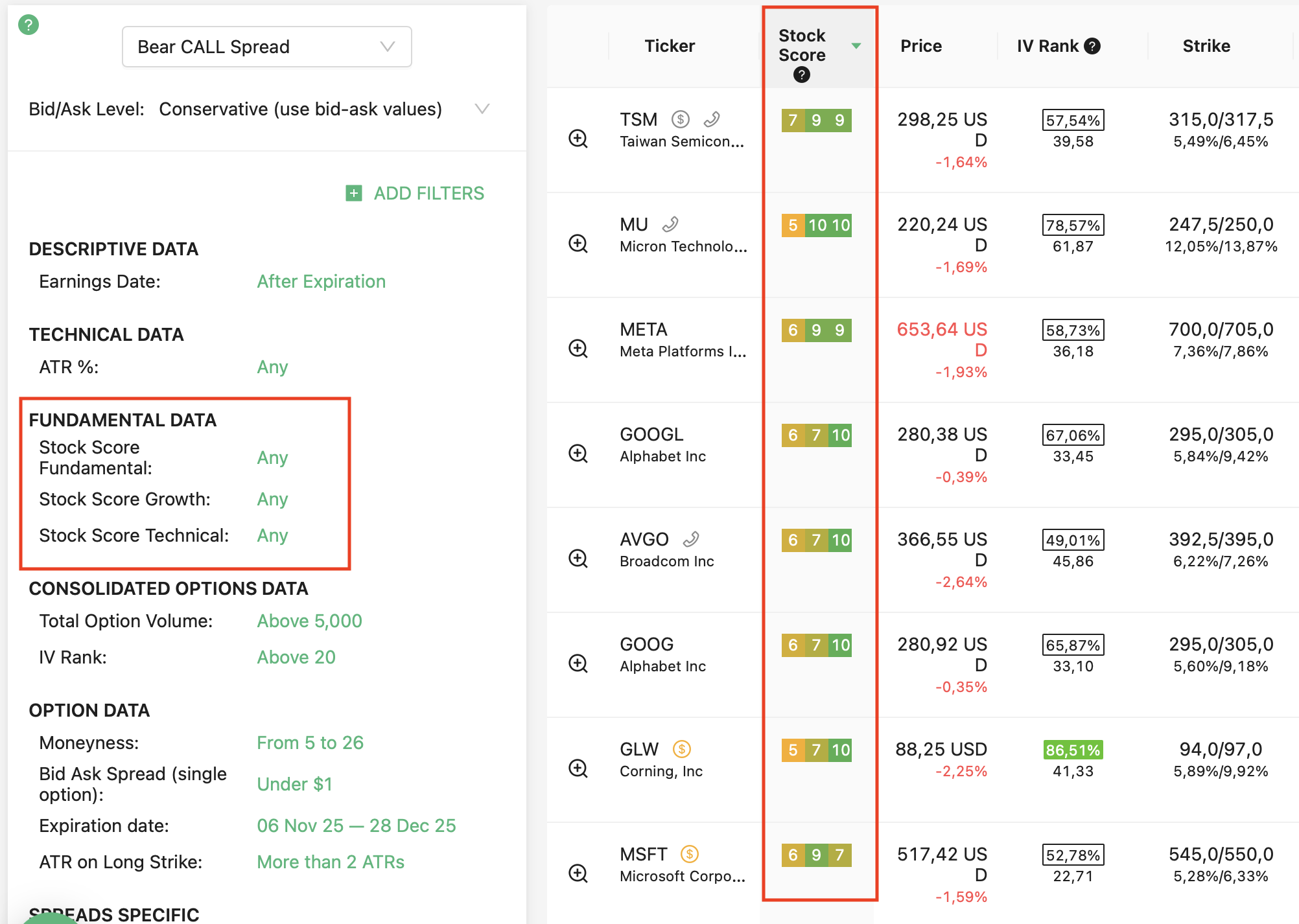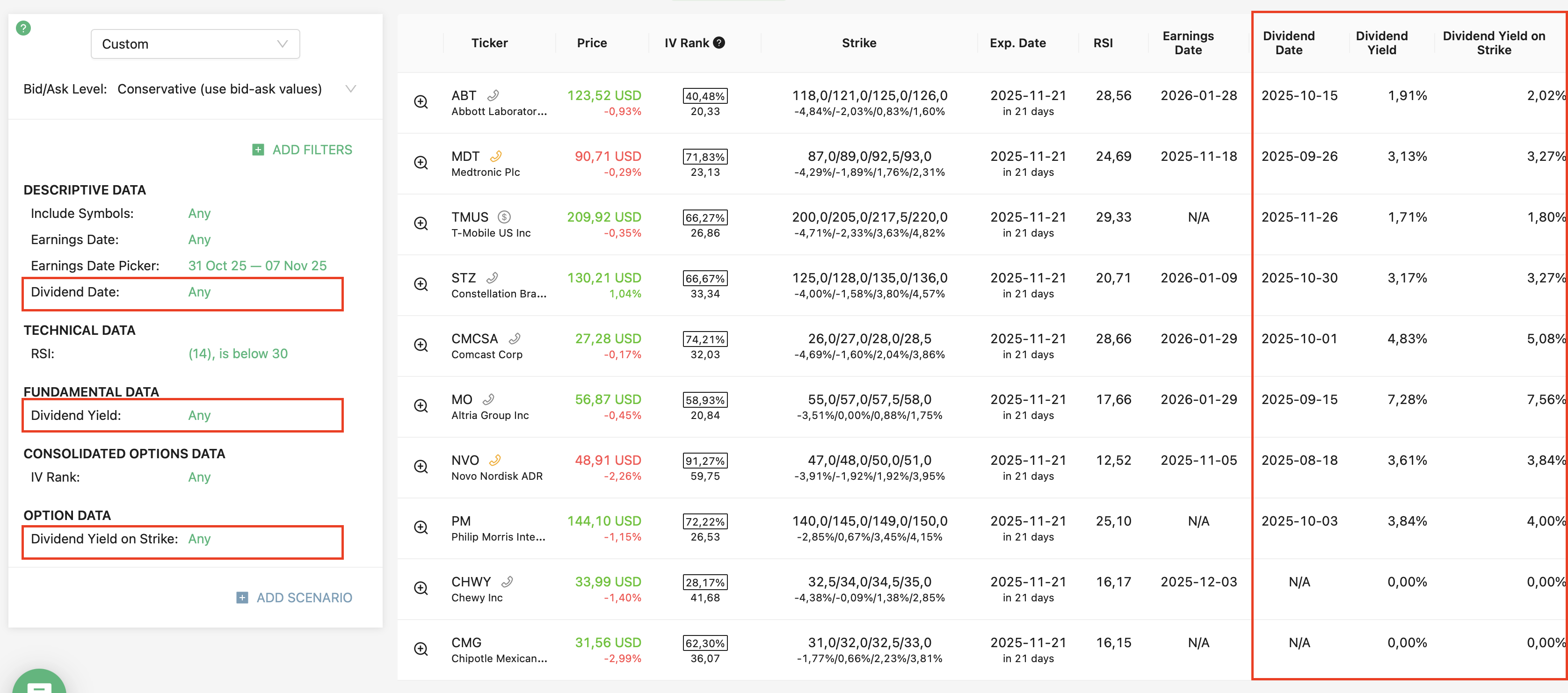 We support 24 strategies and allow you to find the best trades in: Covered call, Naked put (cash-secured put), Long call, Long put, Married call (protective call), Married put (protective put), Bull Call Spread, Bull Put Spread, Bear Call Spread, Bear Put Spread, Straddle, Strangles, Iron Condor, Diagonals, Butterflies and more. Check our knowledgebase for more information.