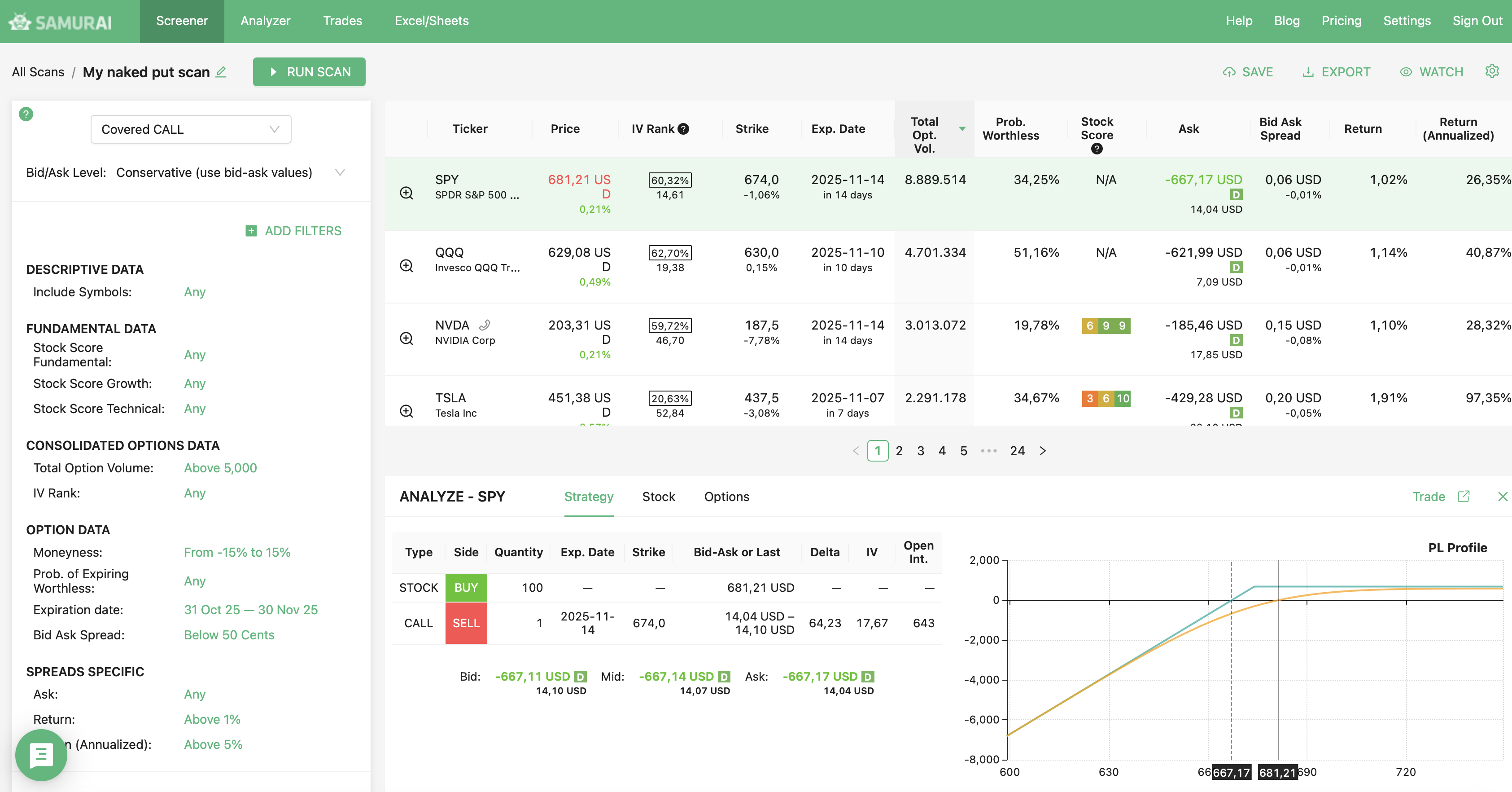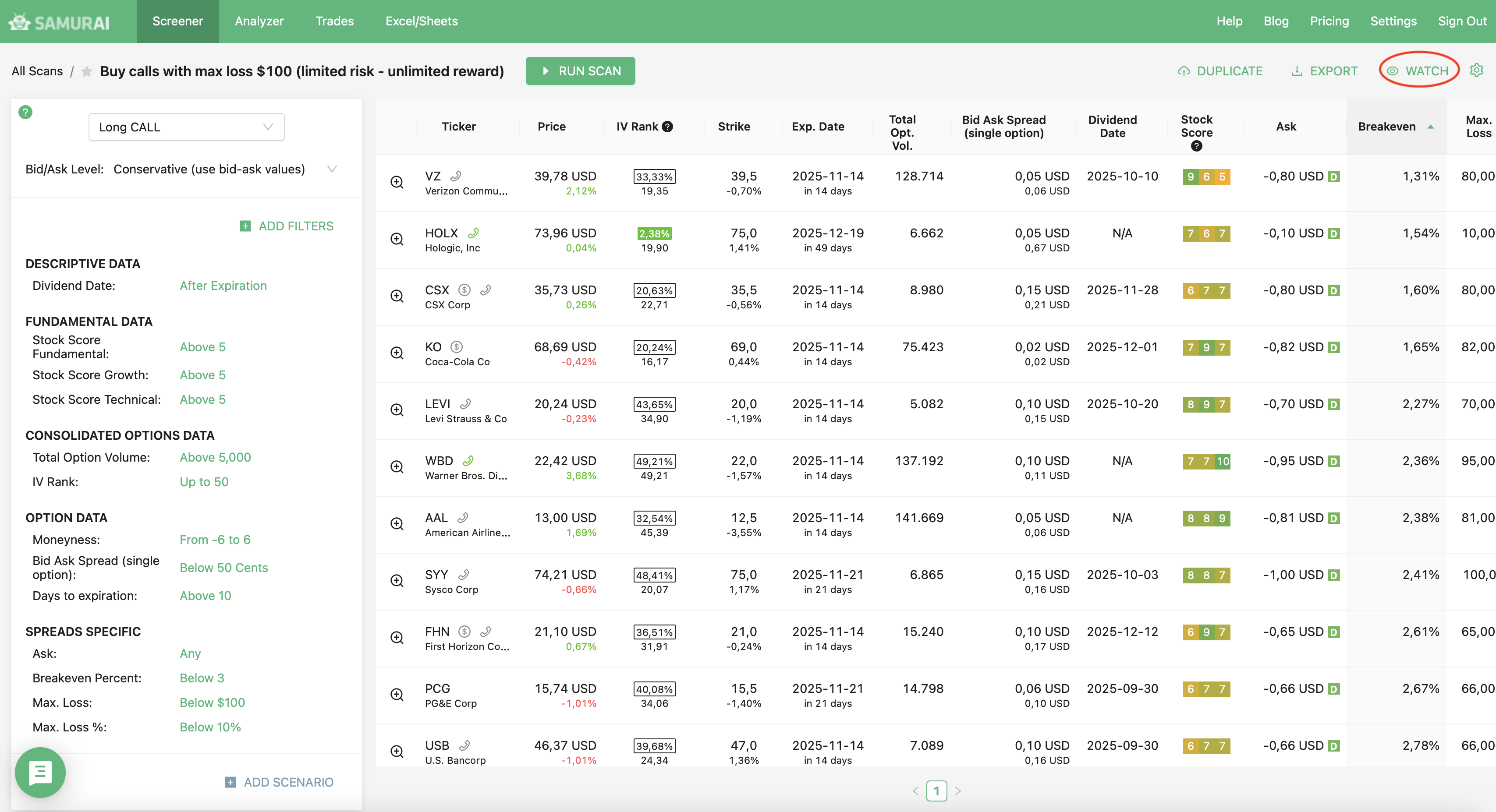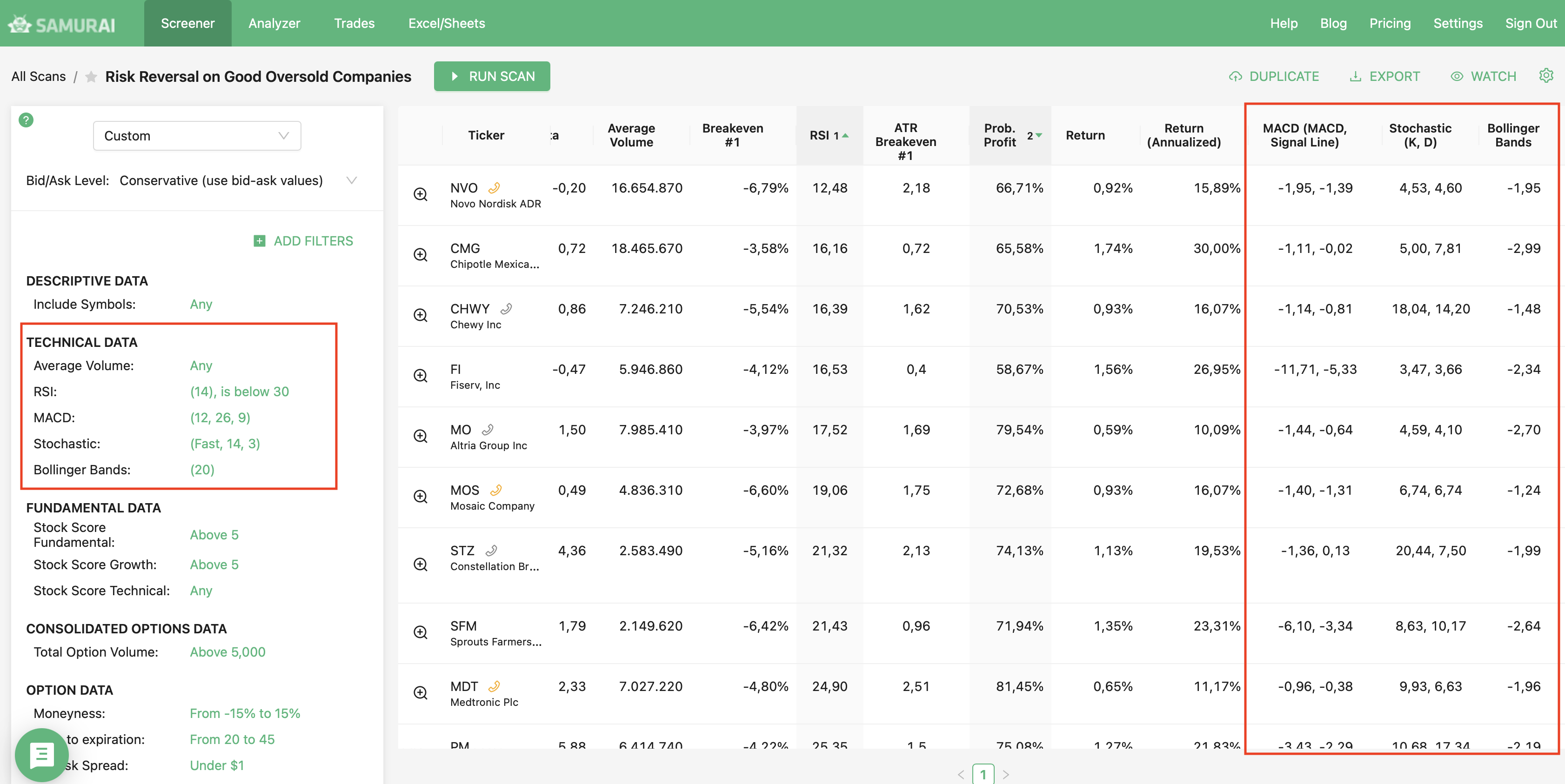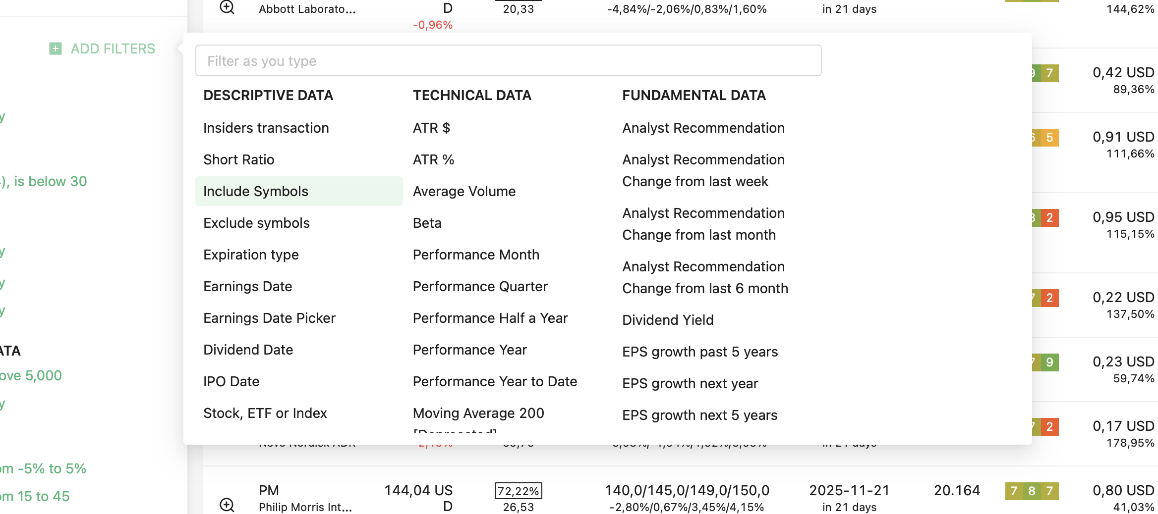 We support 24 strategies and allow you to find the best trades in: Covered call, Naked put (cash-secured put), Long call, Long put, Married call (protective call), Married put (protective put), Bull Call Spread, Bull Put Spread, Bear Call Spread, Bear Put Spread, Straddle, Strangles, Iron Condor, Diagonals, Butterflies and more. Check our knowledgebase for more information.