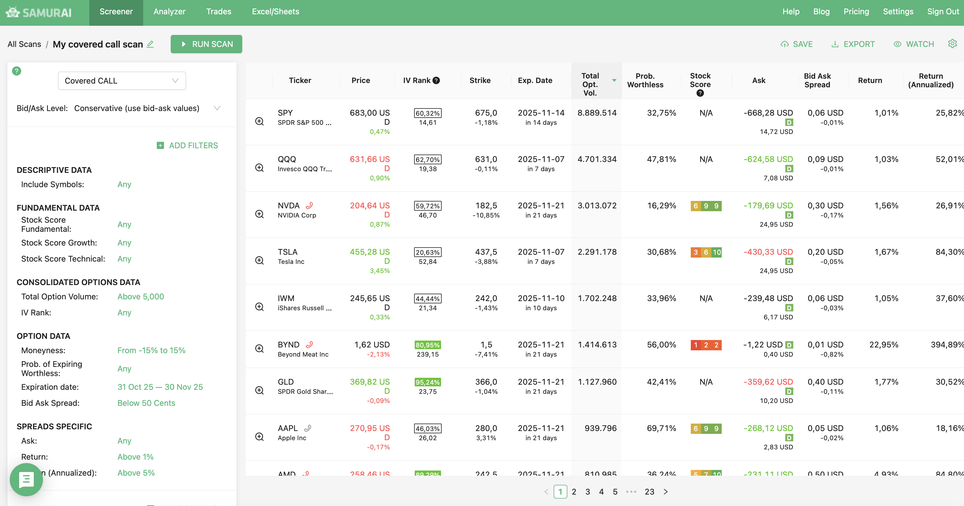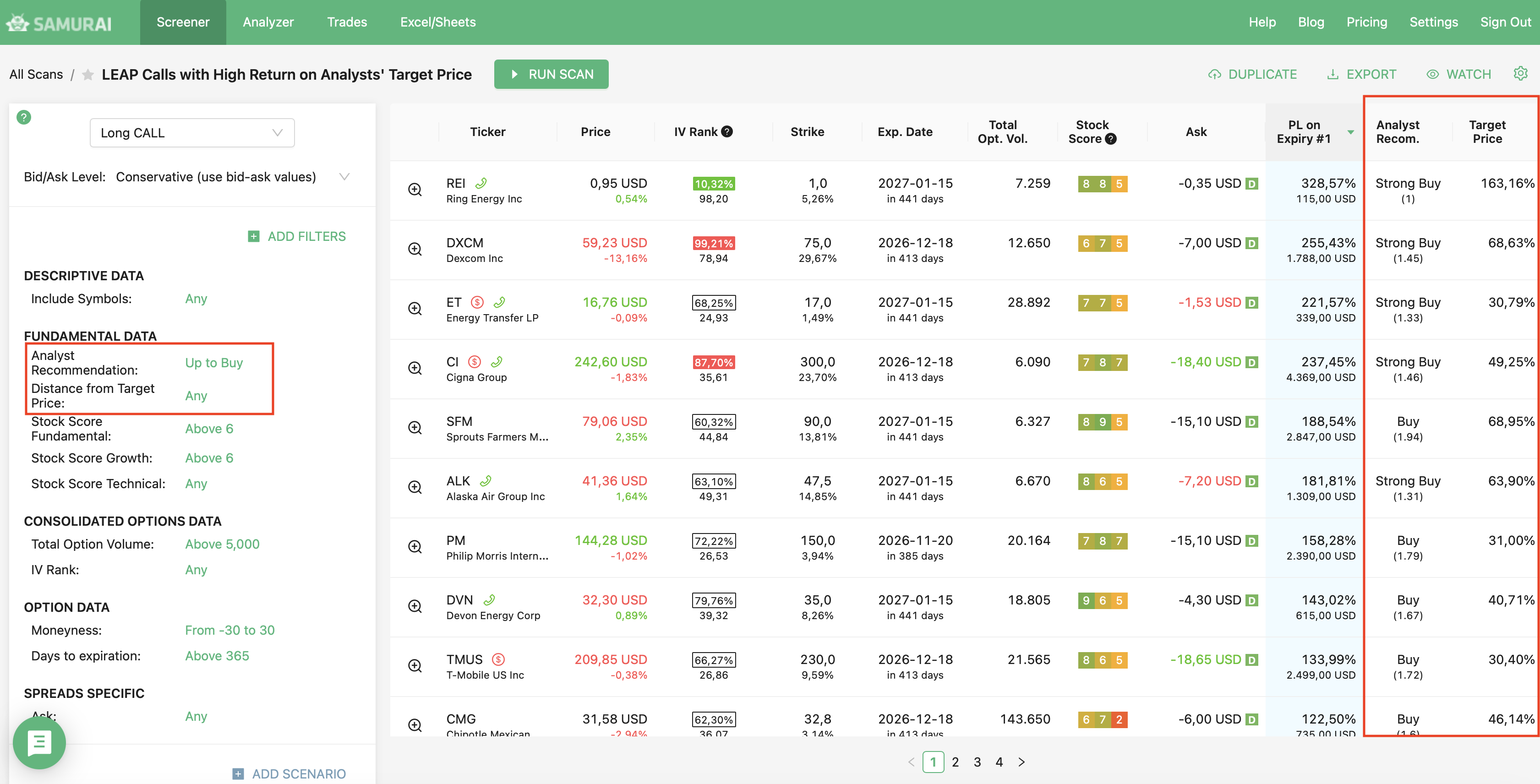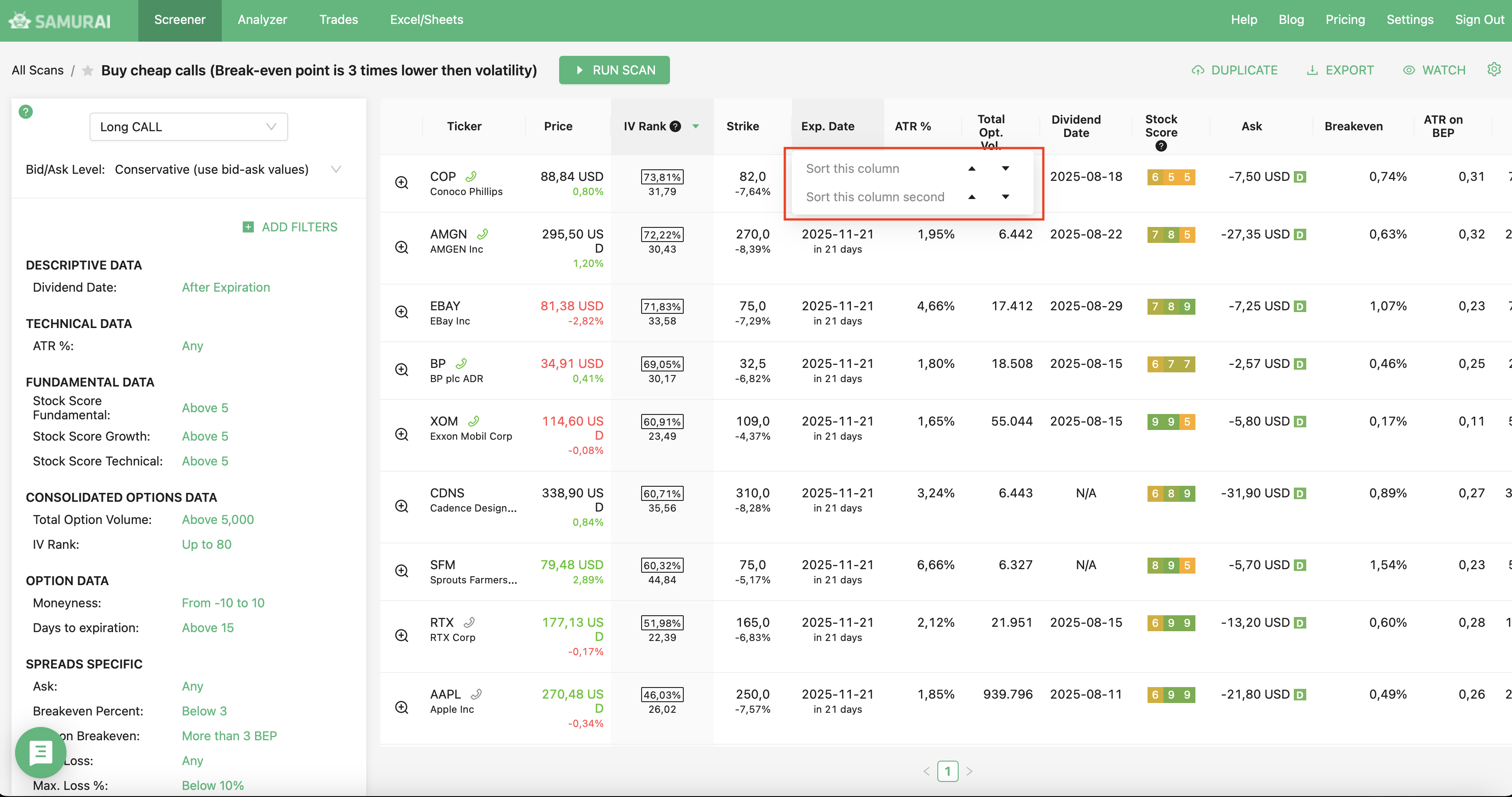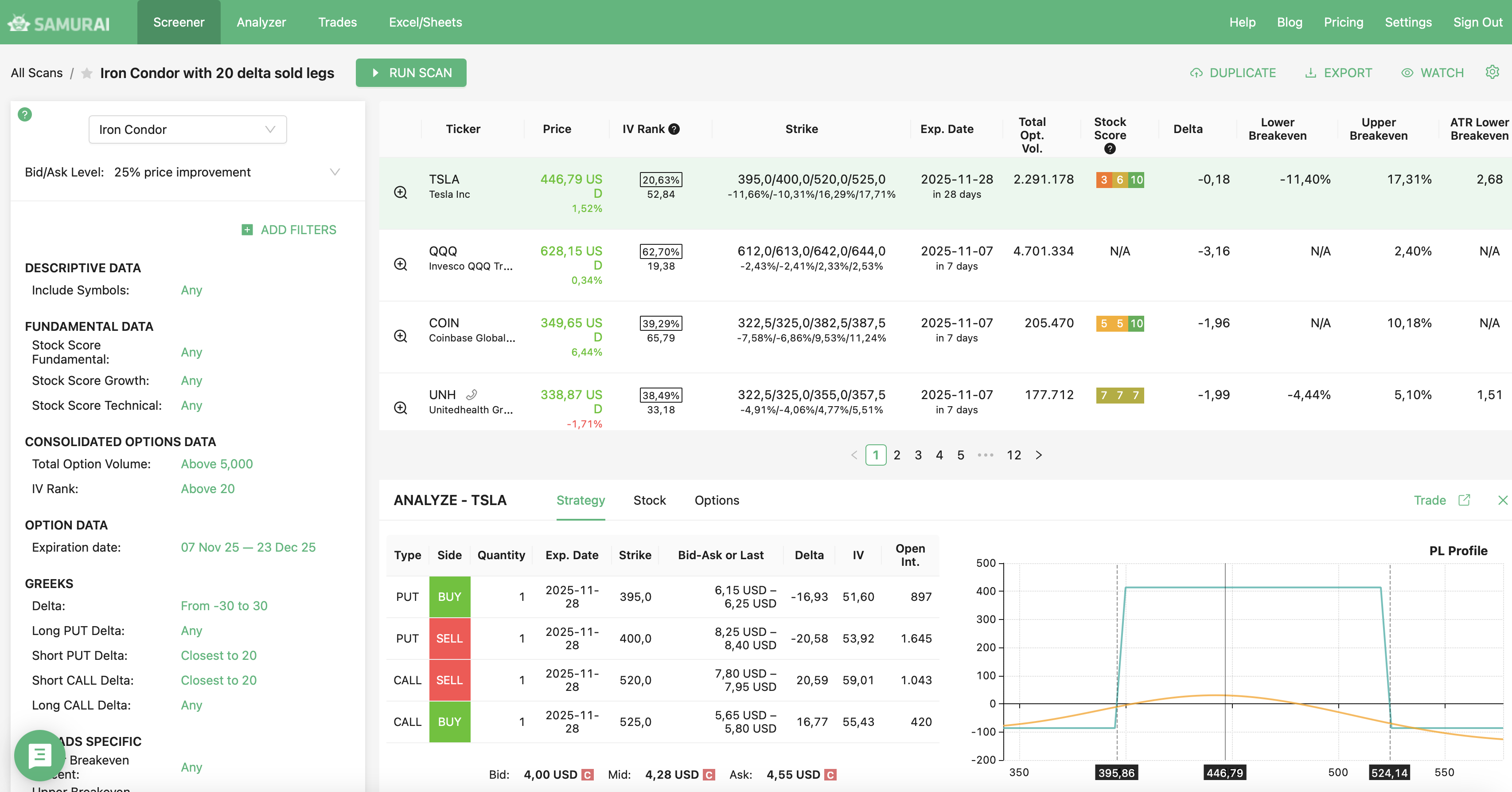 We support 24 strategies and allow you to find the best trades in: Covered call, Naked put (cash-secured put), Long call, Long put, Married call (protective call), Married put (protective put), Bull Call Spread, Bull Put Spread, Bear Call Spread, Bear Put Spread, Straddle, Strangles, Iron Condor, Diagonals, Butterflies and more. Check our knowledgebase for more information.