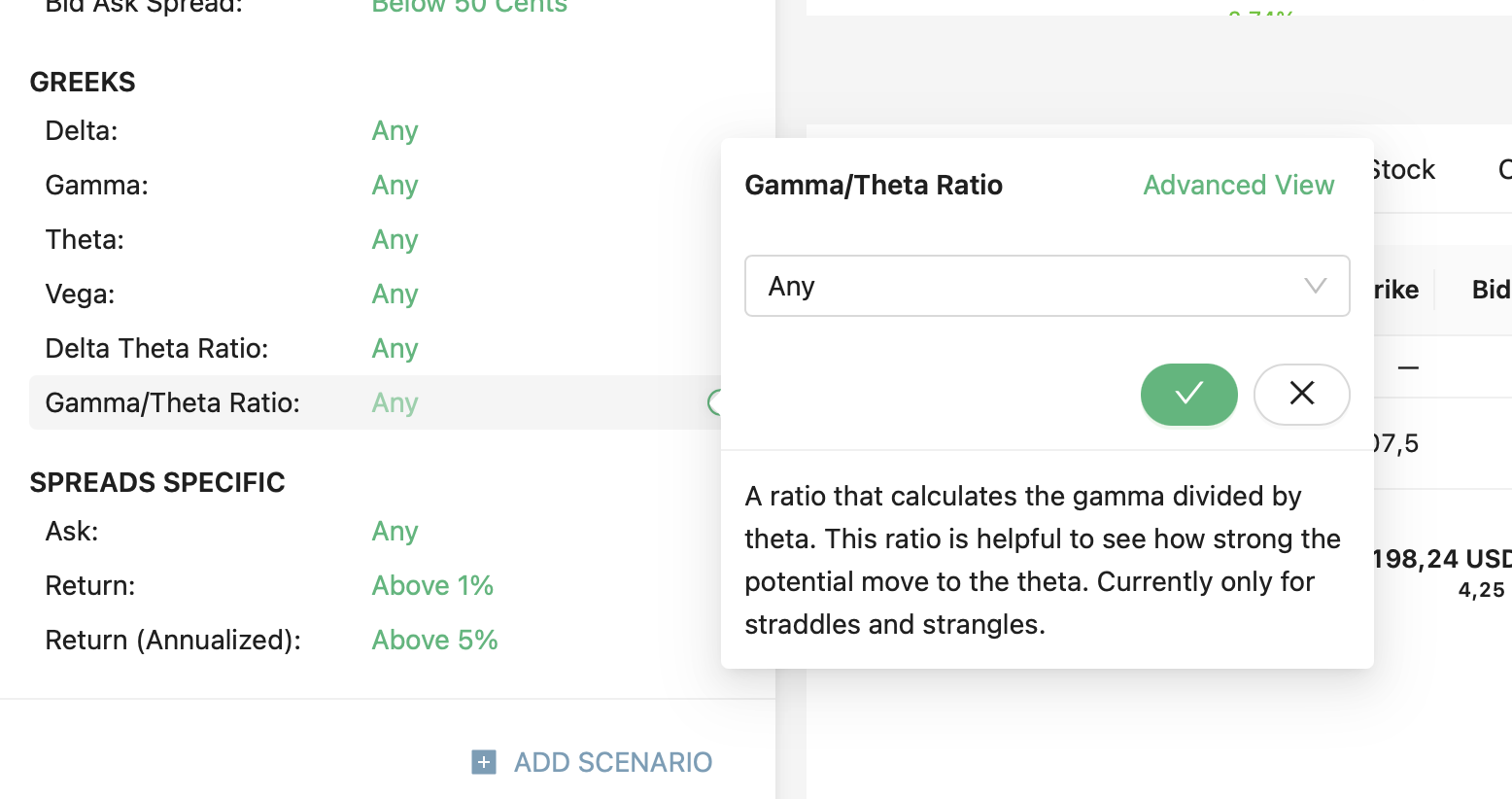 An option scanner (or option screener) is like a radar that scans the market and returns results that fit your criteria. Our scanner uses live data from a variety of sources to help you fine-tune your search and help you find the best trades before other traders.