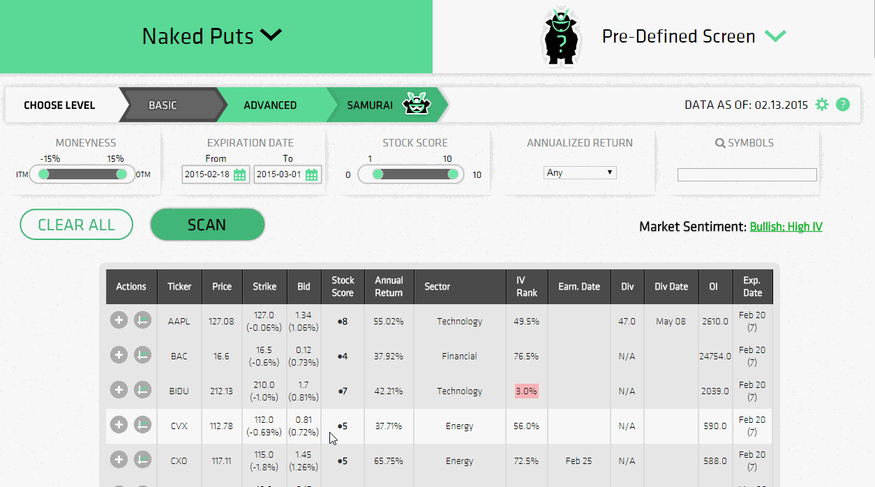 Finding earning trades in Option Samurai