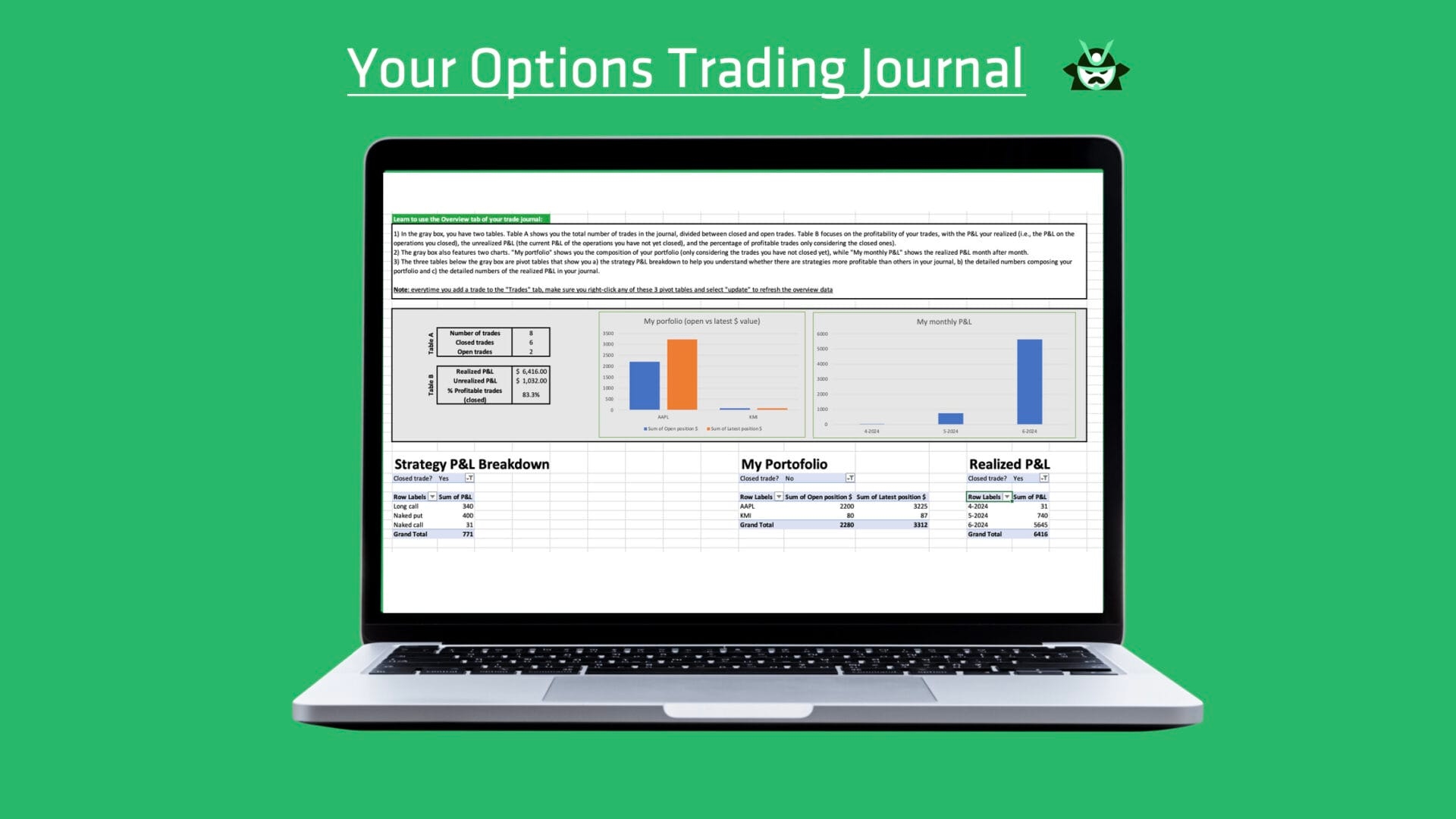 The rest of the article will elaborate on our Excel template as an intuitive way to keep an offline options trading journal. Note that this file is free, but if you want something more advanced and automated, our trading journal feature on Option Samurai is definitely what you’re looking for.